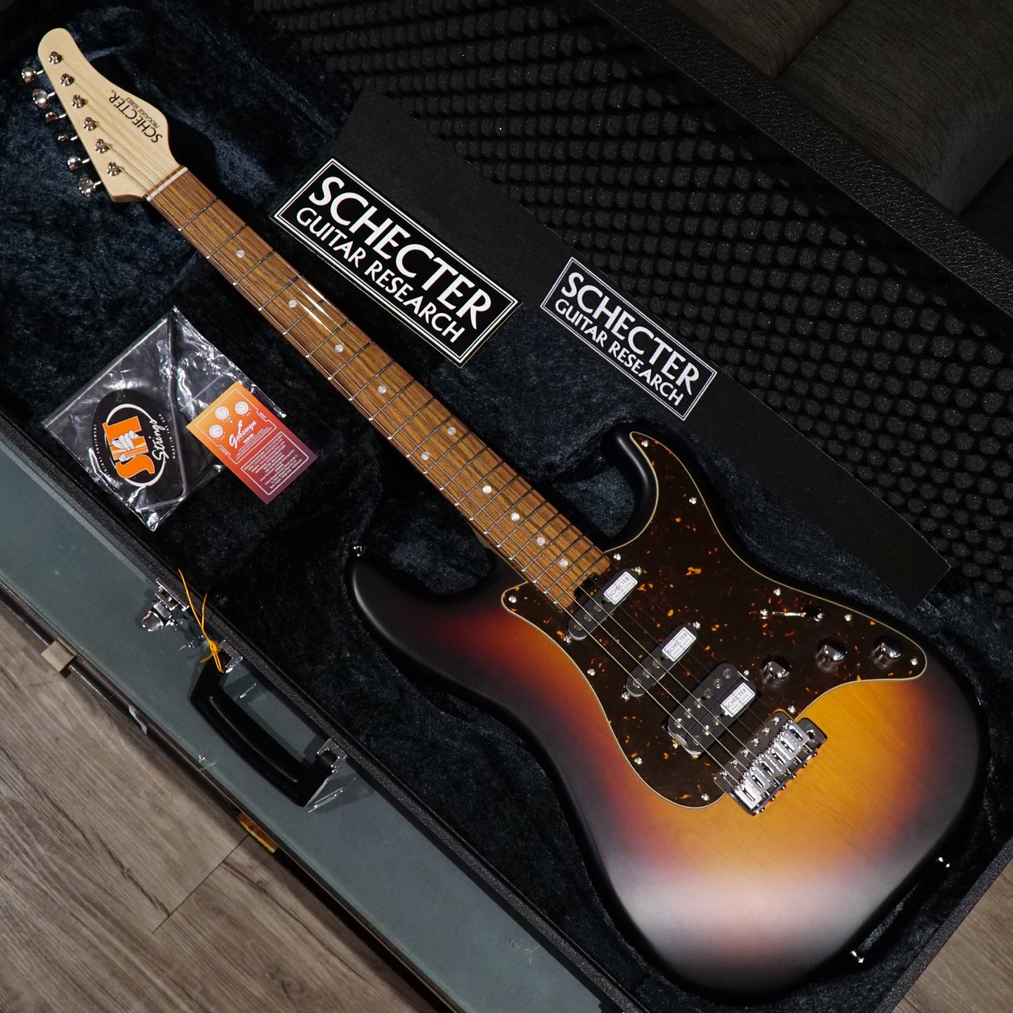 Schecter Synyster Custom S Synyster Gates Signature Electric Guitar Black And Gold Pinstripe Finish W Sustainiac System