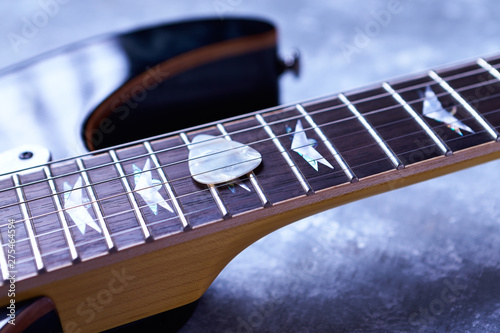 Wroclaw Poland June 10 2019 Fretboard Of Schecter Banshee 6 Extreme Electric Guitar Wooden Background Buy This Stock Photo And Explore Similar Images At Adobe Stock Adobe Stock
