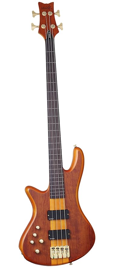 Schecter Guitar Research Stiletto Studio 4 String Fretless Electric Bass Guitar Honey Satin 4 String Bass Guitars Bass