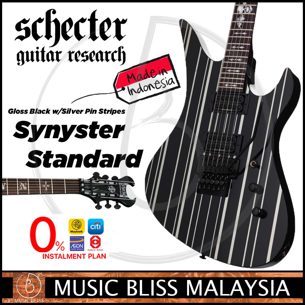 Schecter Gloss Black White Silver Penstripe Schecter Gates Electric Guitar Rose Rosewood Fingerboard I Seamusician