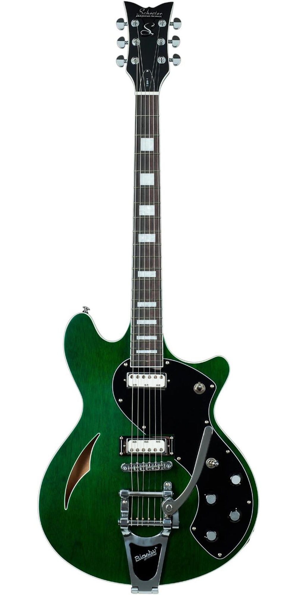 Bigsby archtop b70 tremolo w roller tonepros tom tpfr t3bt schecter diamond superrock mh pickups. Sun valley ca 91352 8188462727 fax. Schecter t sh 1b emerald green pearl b stock semi hollow guitar with bigsby tsh1b tsh 1b.